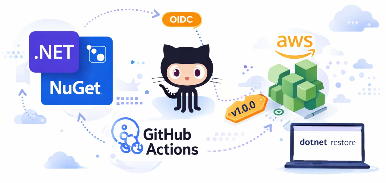 Ship internal .NET libraries securely using GitHub Actions + OIDC to publish NuGet packages to AWS CodeArtifact—no long-lived AWS keys, tag-based releases, and clean consumption patterns.
